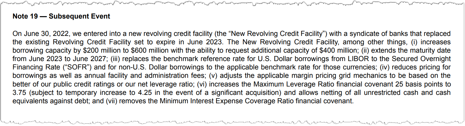 Holcom reported that this morning, Acuity Brands closed on a $600 million revolving credit facility which provides the company with “additional flexibility, if needed, to accomplish our capital allocation priorities." The 5-year facility provides an additional $200 million in borrowing capacity compared to its most recent revolving credit facility.