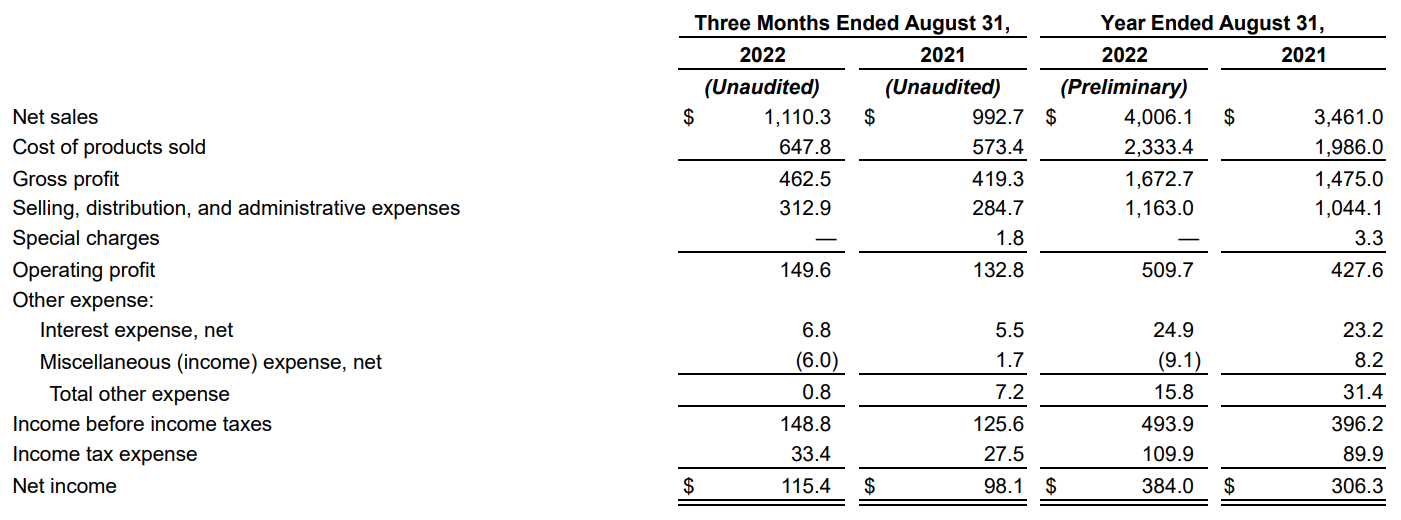 Increased net sales 12% in Q4'2022; 16% in FY'2022 over the prior year.