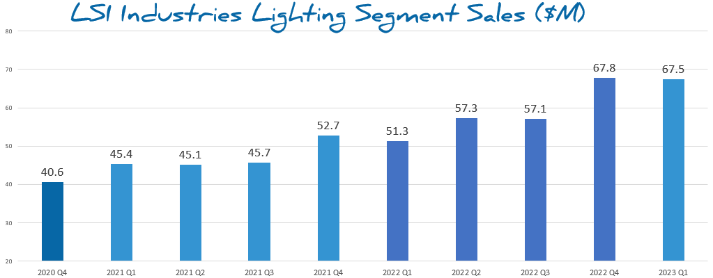 Lighting Segment net sales for Q1 2023 were $67.5 million, an increase of 32% versus the same quarter a year ago.