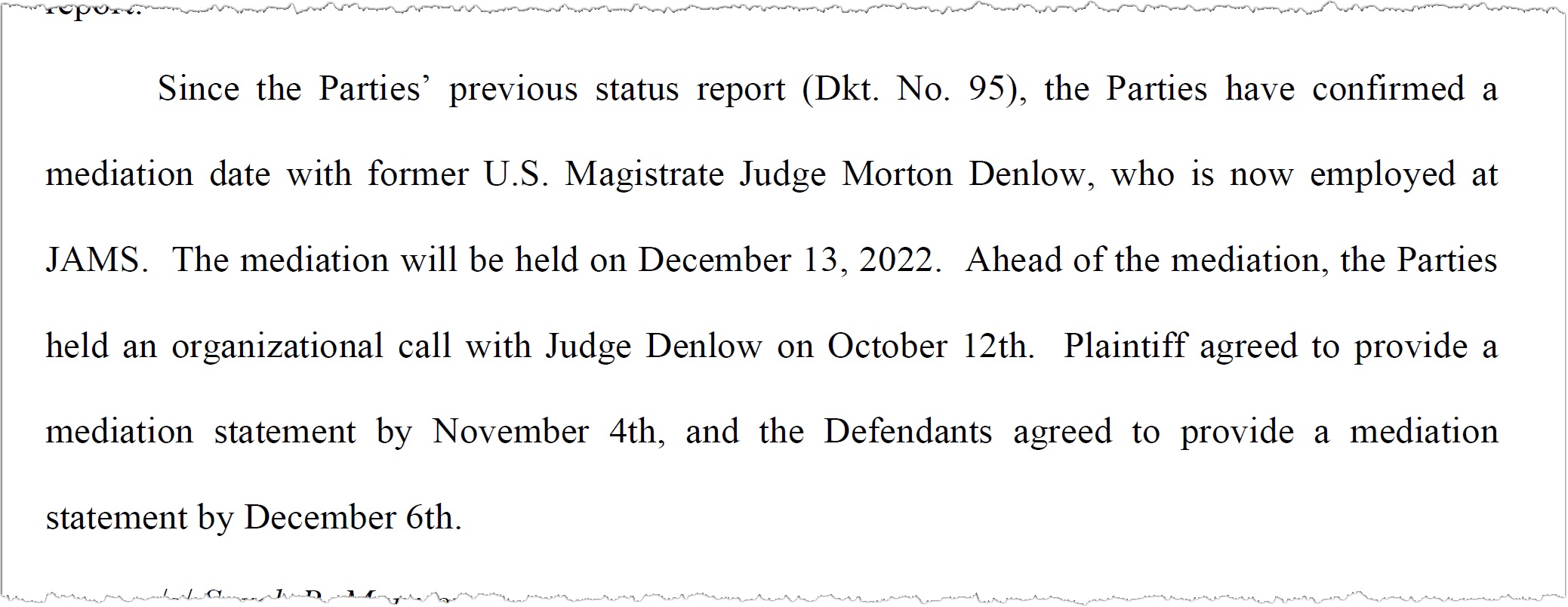 In October, we detailed the possibility of mediation and received a statement from KSA President, Jim Williams, which stated in part, ”…While mediation may be fruitful, we are fully prepared to aggressively litigate this lawsuit through trial to vindicate our position.”