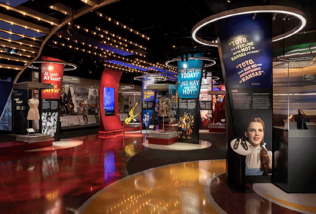The Entertainment Nation Gallery at Smithsonian’s National Museum of American History is an expertly curated history of entertainment in America settling a new contemporary aesthetic for NMAH. The 6,700 sq.ft. exhibit covers many aspects of entertainment from early days of theater, vaudeville, cinema, and sports through today’s entertainment stars, shows, and athletes. Show-stopping artifacts include Prince’s guitar Nispey Hussle’s DJ rig, and Dorothy’s ruby slippers.