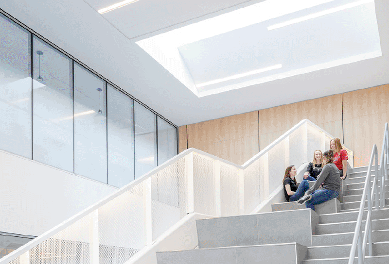 Nestled in the dense urban fabric of Buffalo’s west side, this 60,000SF Education Hub is an amenity for both its users and community. Showcased in glass, public art and intentionally illuminated street-facing components are situated within its visually permeable exterior. The design team approached the project through lenses of inclusivity, functionality, and sustainability, and relied heavily on daylight design and analysis to optimize the siting and facade of the building. As a result, the building’s atrium creates a core of natural light, with a system of meticulously placed skylights branching out to deliver daylight throughout the building.