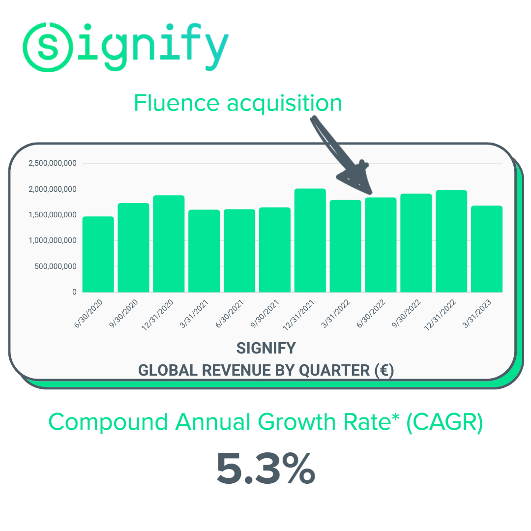 Signify acquired Texas horticultural lighting leader, Fluence, in 2022. At the time of the announcement, Fluence was a $141 million company. Signify also acquired smart cities lighting and controls company, Telensa, in 2021.