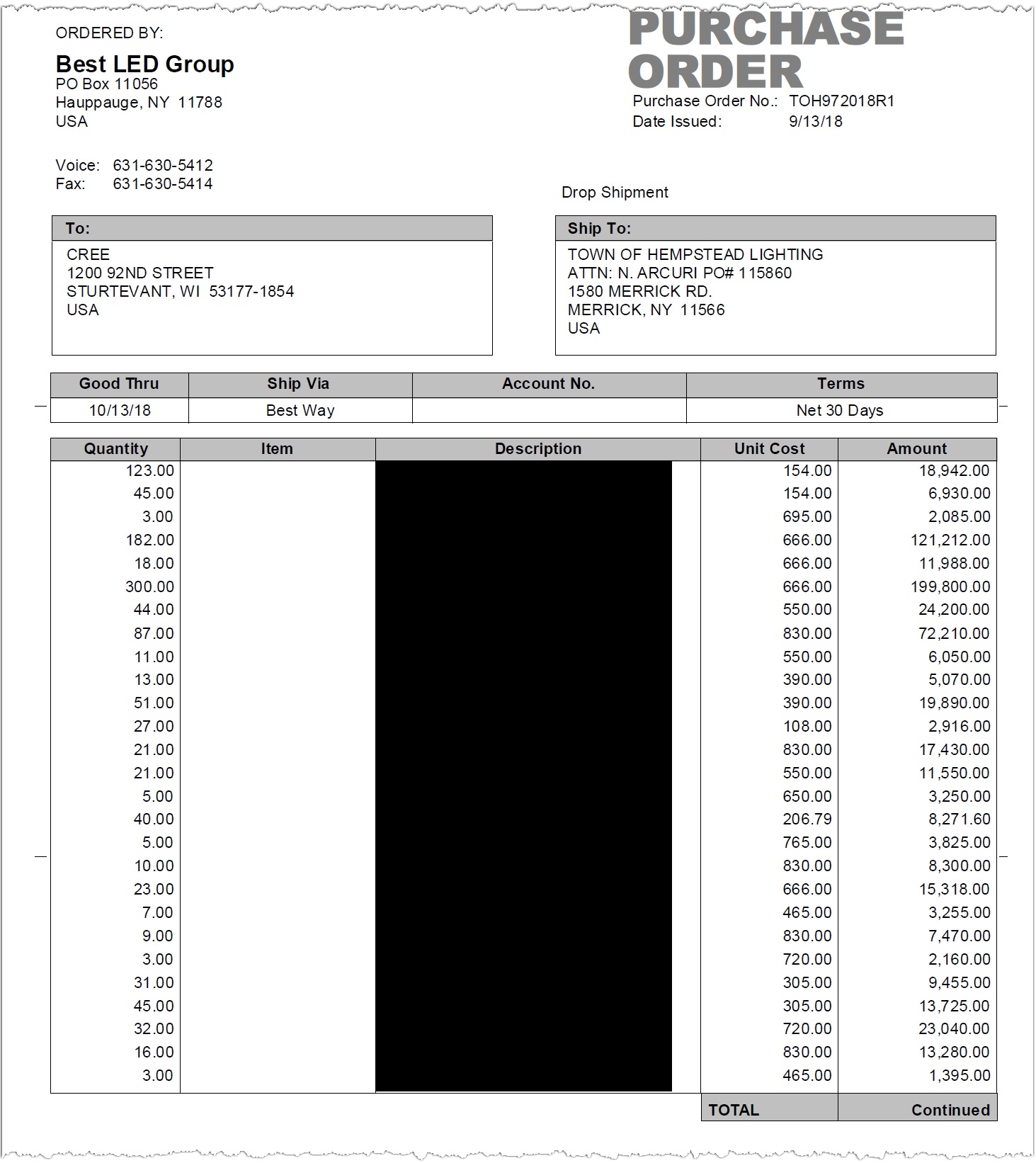 Cree Lighting is suing the Long Island company, Best LED Group, for non-payment of $971,710 for streetlight products purchased in multiple phases for the Town of Hempstead project dating back to 2018.