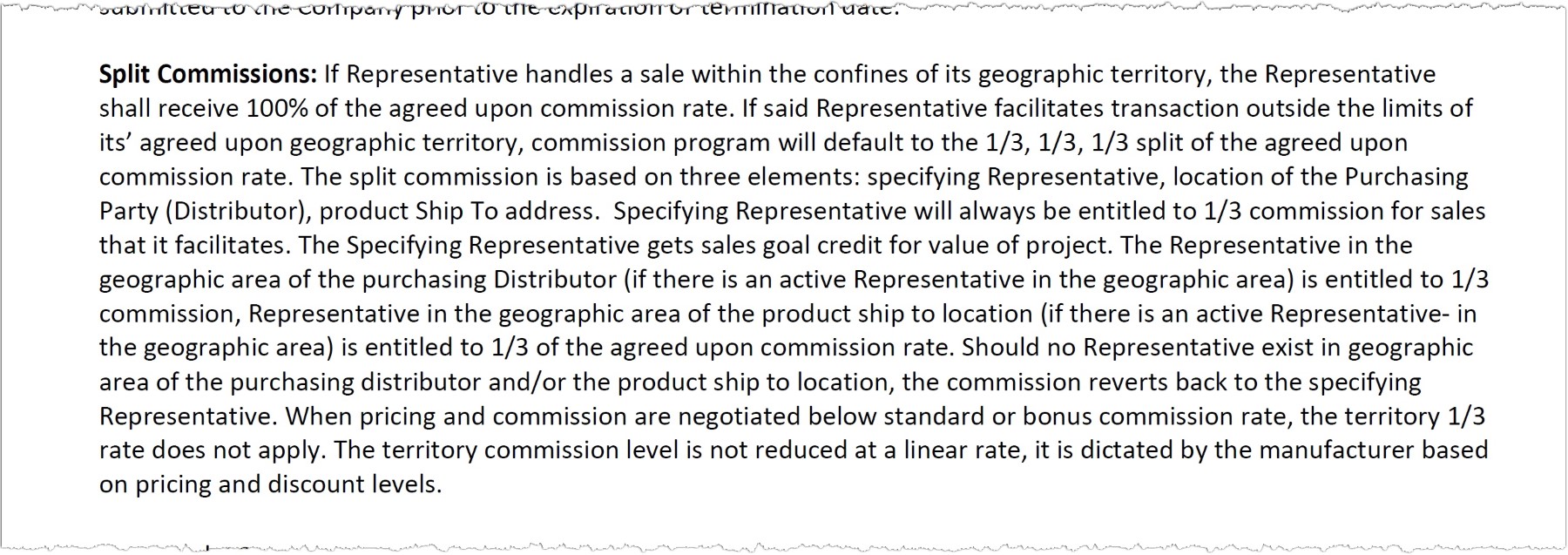 Above: Contract language from the 2023 sales rep agreement.