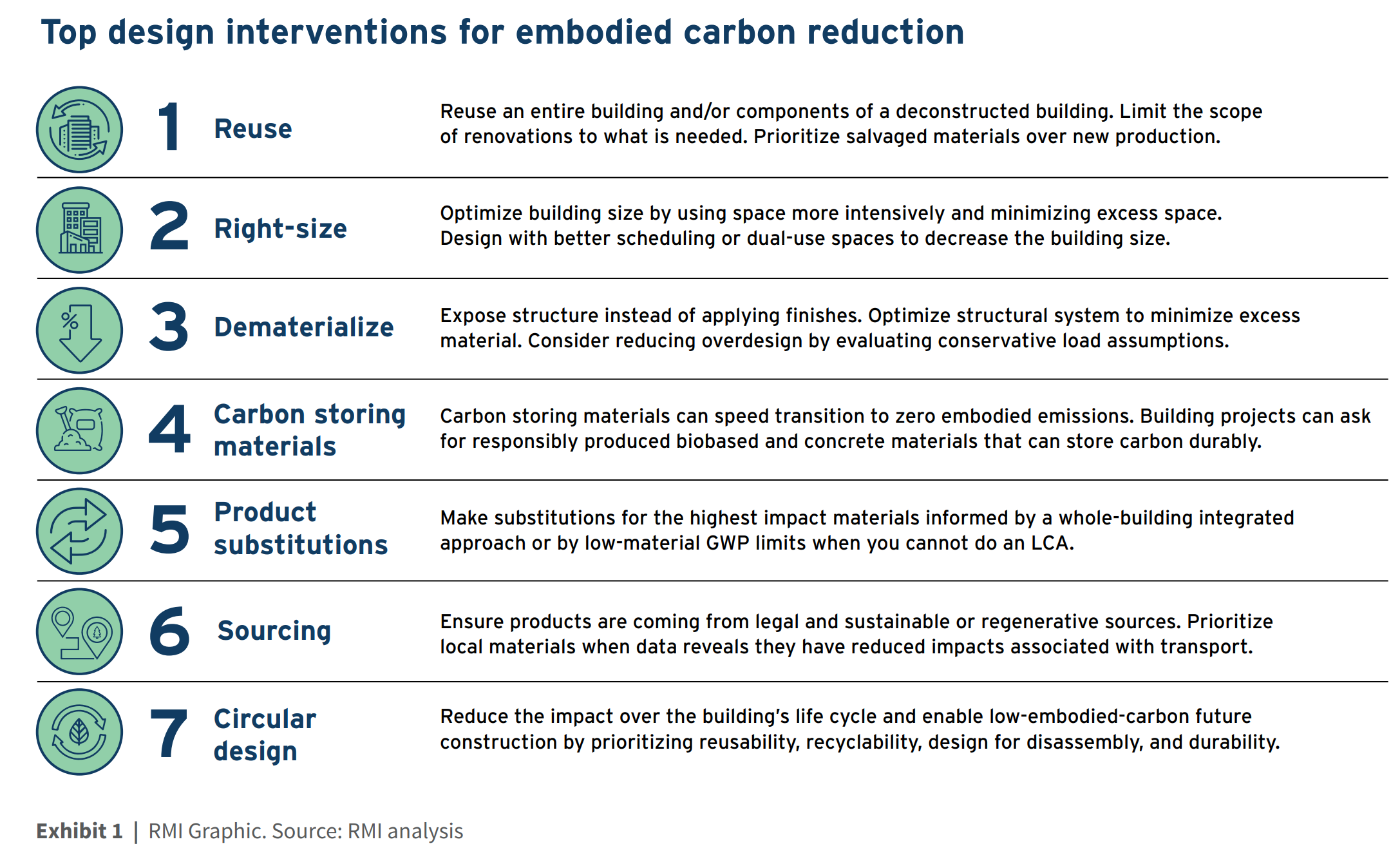 The two organizations draw from a comprehensive foundation of research based on the most up-to-date and relevant data and industry knowledge to establish a set of recommendations and actions for embodied carbon, including: