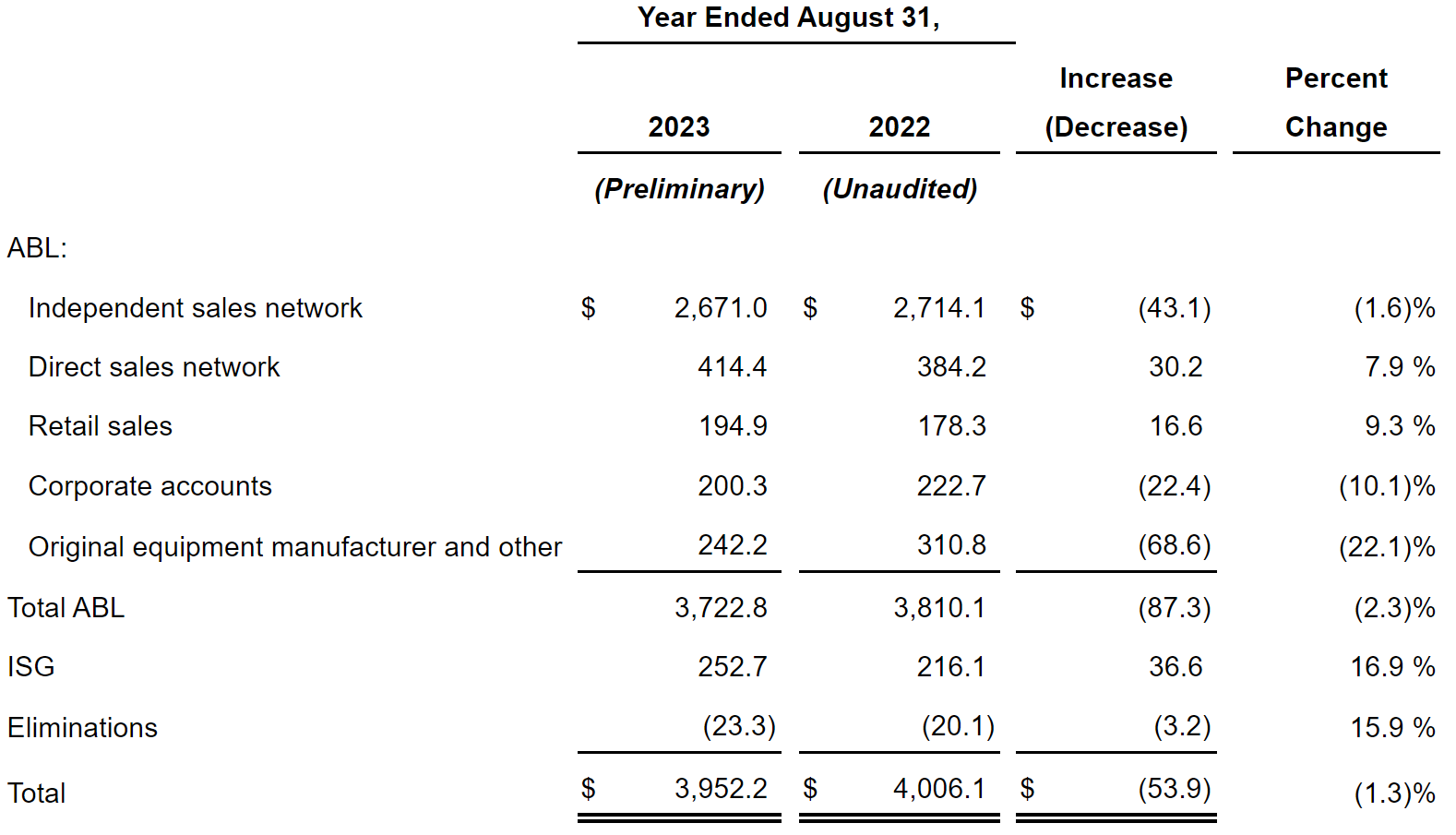 Today, Acuity Brands reported its results for the fourth quarter and the full Fiscal Year 2023, ending on August 31, 2023.