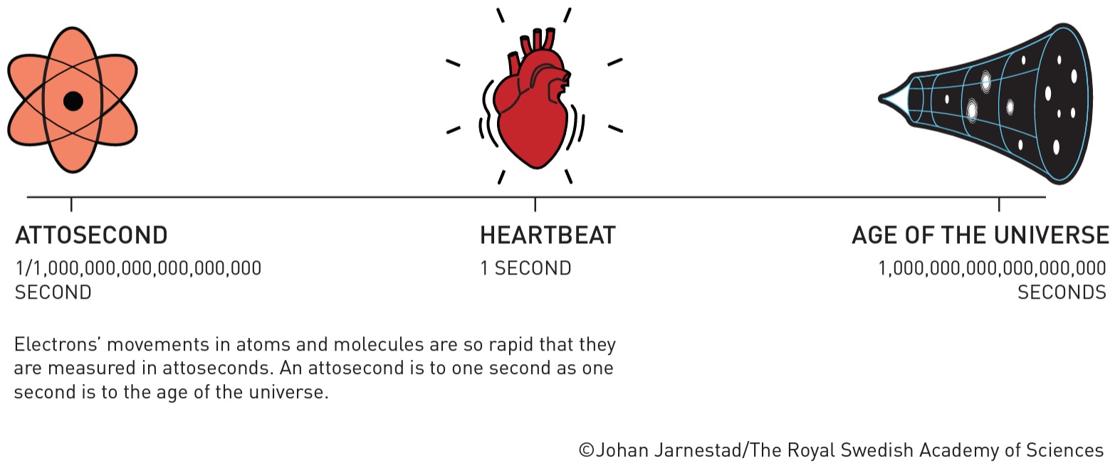Fast-moving events flow into each other when perceived by humans, just like a film that consists of still images is perceived as continual movement. If we want to investigate really brief events, we need special technology. In the world of electrons, changes occur in a few tenths of an attosecond – an attosecond is so short that there are as many in one second as there have been seconds since the birth of the universe.