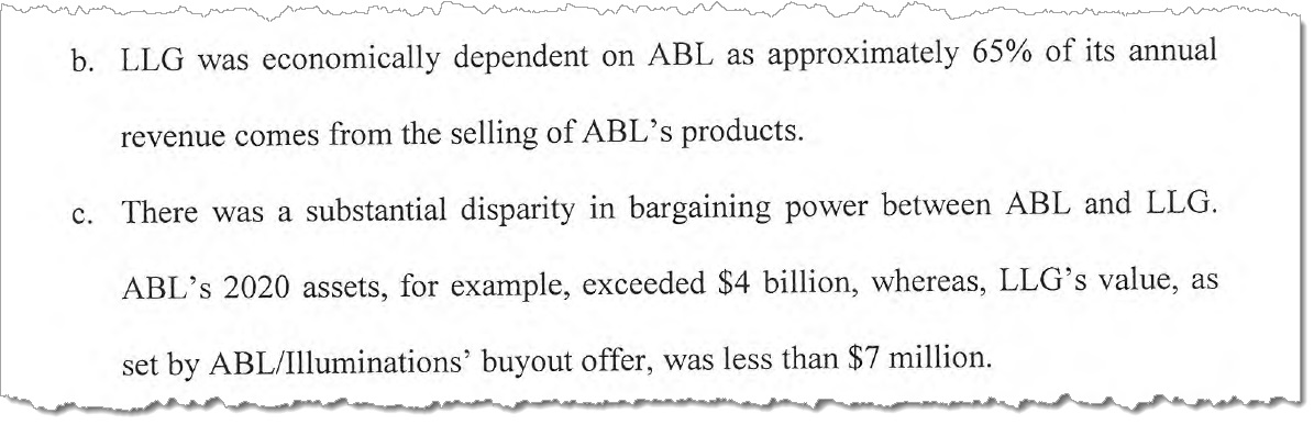 With the three parties, Liberty Lighting Group, Acuity Brands and Illuminations all parties to an NDA contract, Liberty is alleging a “Breach of the Implied Covenant of Good Faith & Fair Dealing” and seeking related damages.