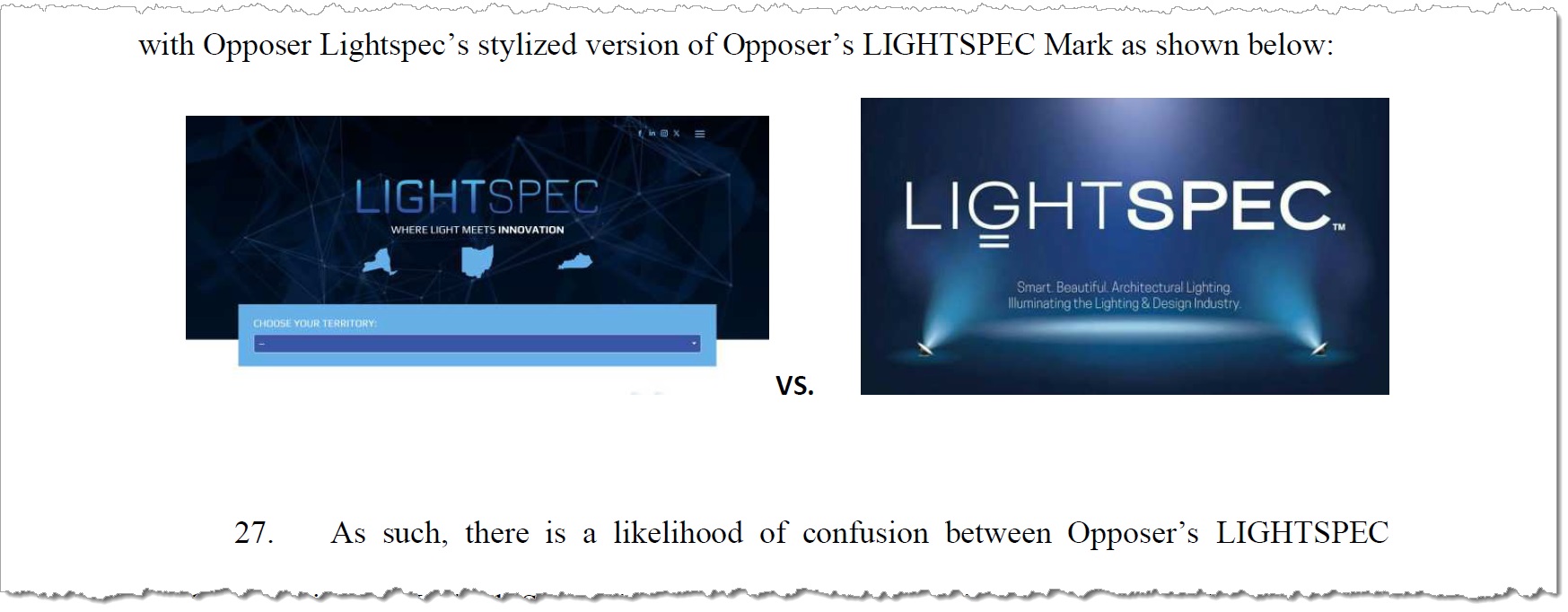 Above: Excerpt from Lightspec LLC's opposition filing