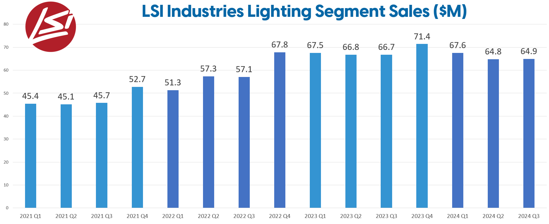 Within the lighting segment – which represents 60% of LSI’s overall business – LSI reported revenues of $64.9 million for the third quarter, a slight reduction from $66.7 million in the same quarter of 2023. The adjusted operating income for this segment grew by 11%, driven by a substantial 280-basis point improvement in the gross margin rate. This was achieved through a strategic mix of products, consistent pricing strategies, moderating material costs, and enhanced productivity at their manufacturing plants.