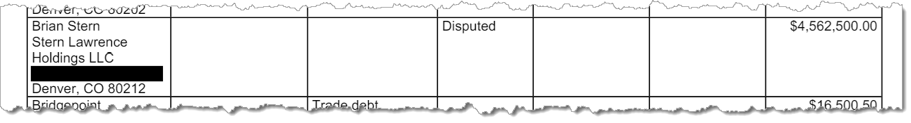 The top five creditors in Applied UV’s Chapter 11 bankruptcy filing highlight the significant financial obligations the company faces. Brian Stern of Stern Lawrence Holdings LLC, with a disputed claim of $4,562,500, emerges as the largest creditor.