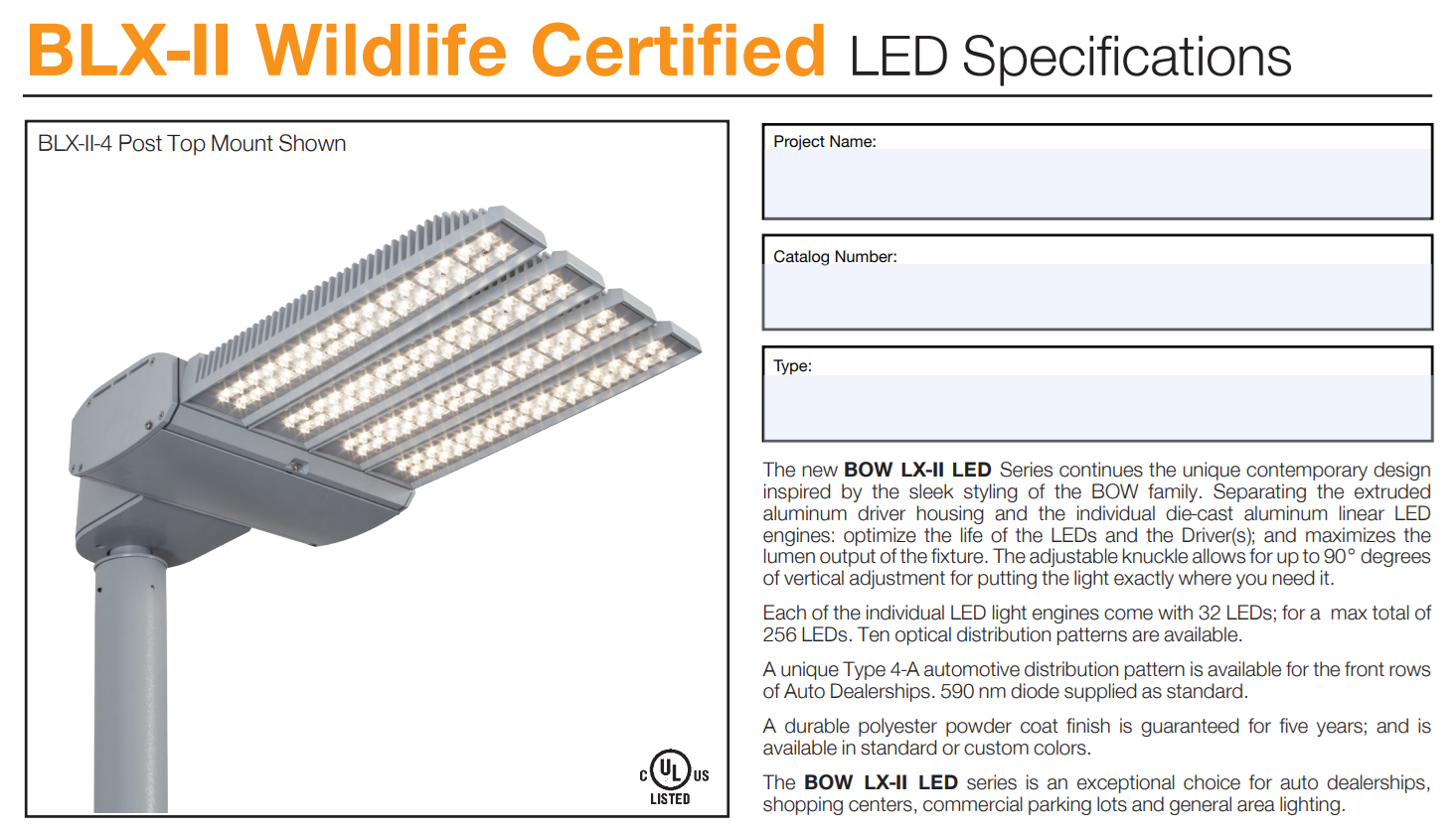 - Cree Lighting 140-watt RSW-XL-AMB wildlife certified fixtures on 22.5-foot standard concrete poles.