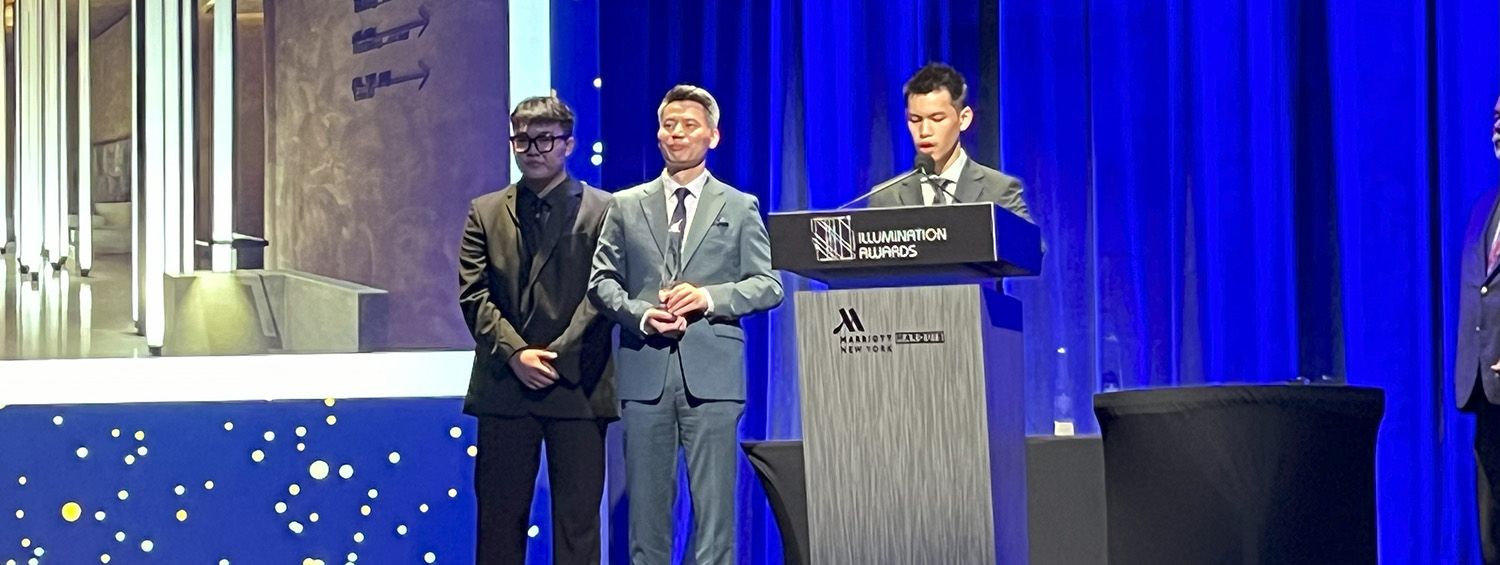 One of the highlights of the evening involved the WEGO Lighting Design team, who traveled from Japan to receive the Award of Distinction for their work on the Yixing Hexi Spa Club. In a memorable and unexpected turn, a teenager accompanied the design team to the stage. The young man, a high school student, surprised attendees when he stepped up to the microphone to deliver the acceptance speech.