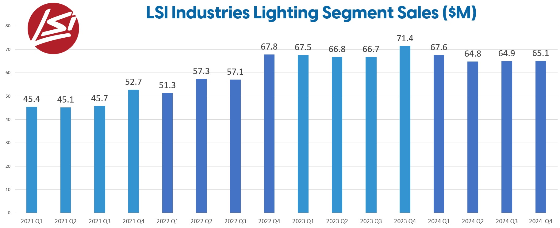 The fourth quarter of fiscal 2024 saw lighting segment sales totaling $65.1 million, down 9% compared to the same period in the previous year. This comparison was particularly notable as it was against LSI's largest revenue lighting quarter ever.