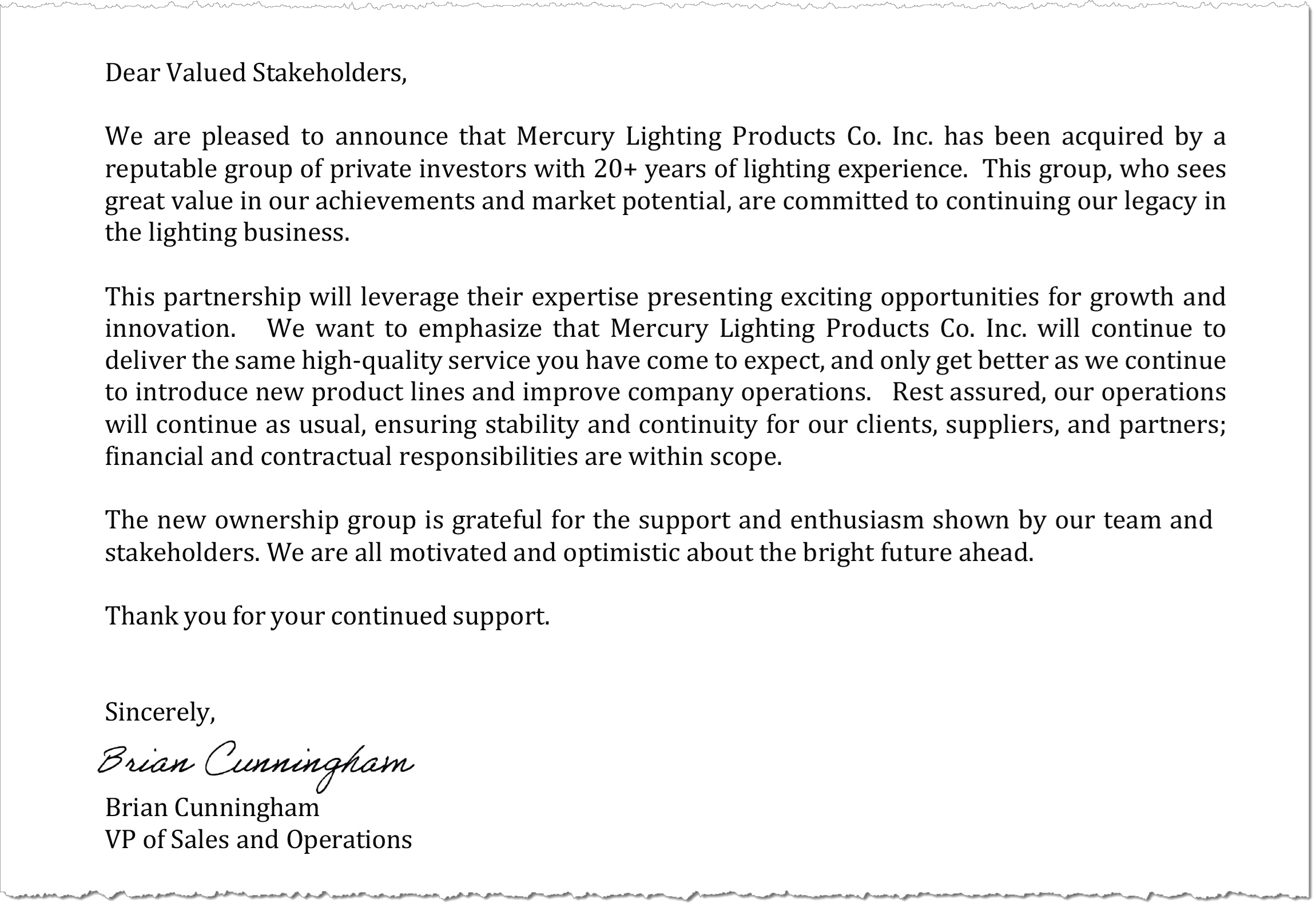 Seven hours after our original report, Inside Lighting received confirmation from Joe DiBernardo of Mercury Lighting Products that the company has been acquired by an investment group that includes DiBernardo himself. According to DiBernardo, this acquisition represents a significant milestone for the company, positioning it for future growth and continued innovation.