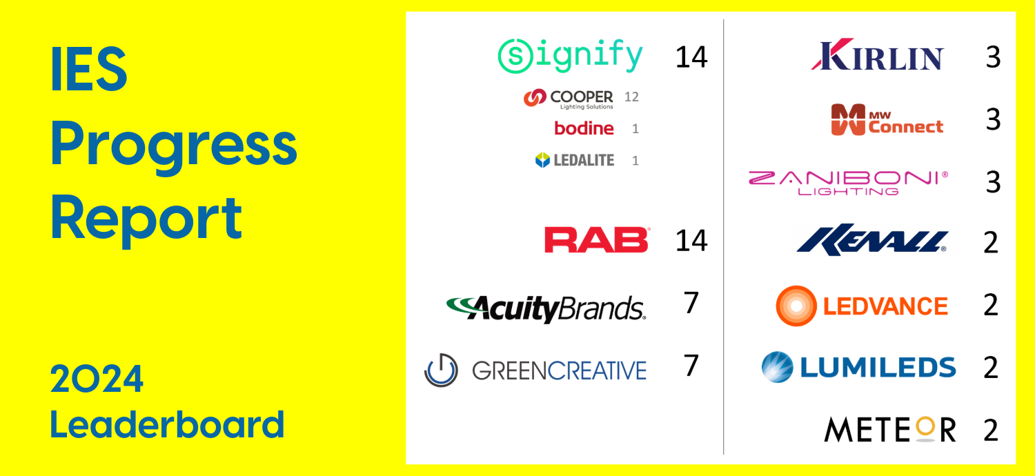 Correction: A previous version of this article mistakenly omitted Zaniboni Lighting from the IES Progress Report leaderboard. Zaniboni Lighting’s Mini TX Downlight, Mini RWX Luminaire, and Omni QT System were accepted into the report, and the company should have been recognized. The omission was due to an oversight in the IES Progress Committee’s initial report and was also missed during Inside Lighting’s editorial review. We regret the error.