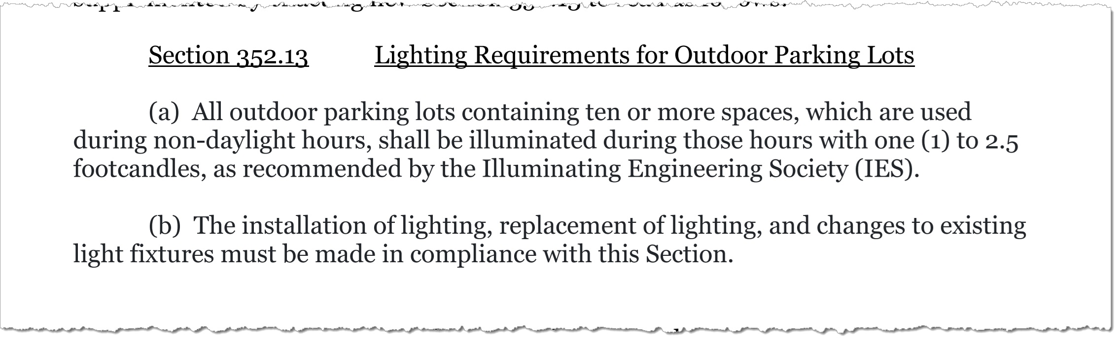 Noncompliance with new parking lot lighting rule lighting could lead to fines and jail time