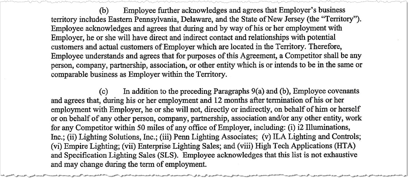 The former Diversified employee is not currently listed on Moxie Lighting’s website, and his LinkedIn profile identifies Albany, NY, as his location — a region outside Diversified’s established territory, and part of Moxie Lighting's Upstate territory. Yet the ex-employee is believed to reside in Monmouth County, New Jersey – a location 180 miles from Albany. These details raise questions about whether he legitimately works in the Upstate territory exclusively or if such measures were taken to obscure his activities and avoid potential violations of Diversified’s agreement.