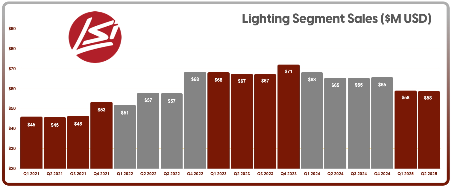 LSI's Lighting segment faced headwinds in fiscal Q2 2025, with sales declining 10% to $58.2 million compared to $64.8 million in the prior year period.