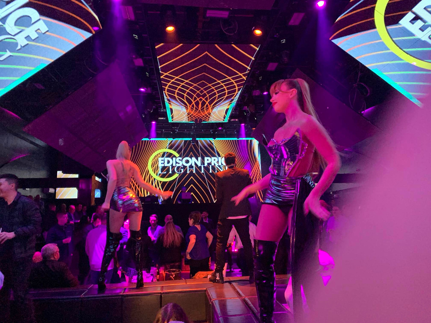 Above: A Tuesday night off-site gathering hosted by Edison Price Lighting drew a lively crowd, with some moments sparking more discussion than others