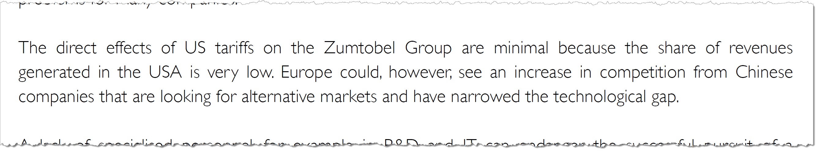 For North America, Zumtobel noted disappointing sales in FY 2024/25, with the region contributing to the underperformance of the Americas and Middle East & Africa segment. While the U.S. represents a smaller share of Zumtobel’s global business, management cited tariff uncertainty and declining construction activity in Europe—partially linked to U.S. policy—as contributing factors to the wider downturn.