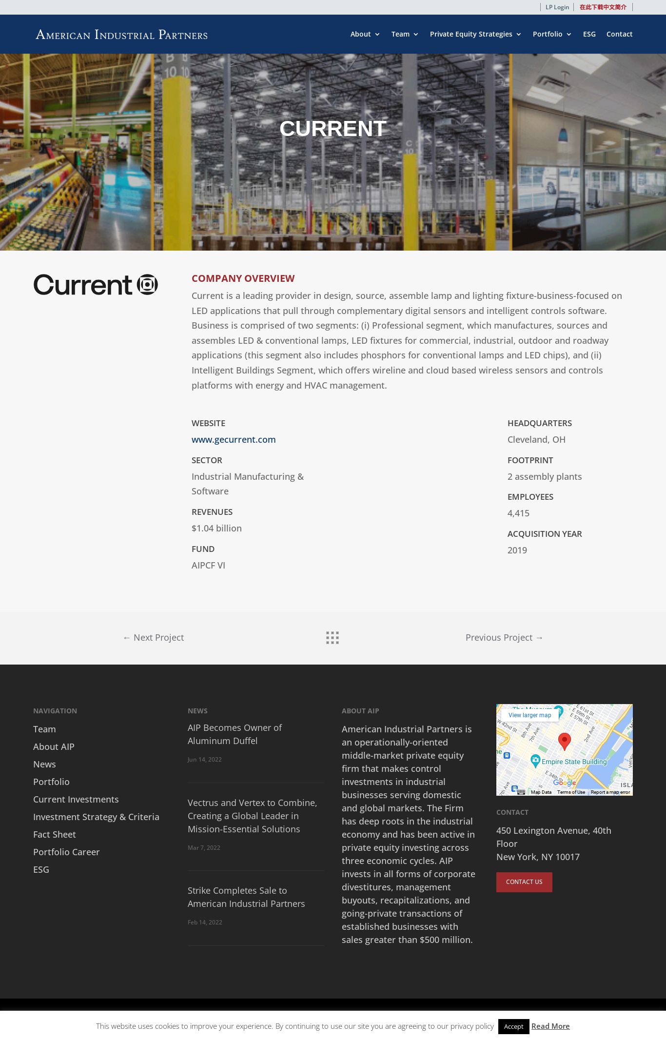 In the high-turnover, high-stakes world of private equity, six years is an eternity. But that’s how long American Industrial Partners (AIP) has held onto Current — the commercial lighting company formerly known as GE Current, a Daintree company. For a private equity firm whose average current hold time is closer to four years, and with only one-third of its 27 industrial portfolio companies older than six years, Current now stands among AIP’s longer-term investments.