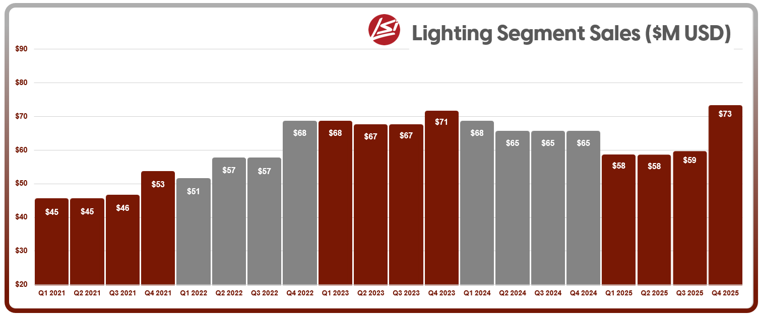 Despite the strong finish, lighting revenue for the full fiscal year slipped to $248.4 million, a 5% decline from fiscal 2024. Most of the softness came in the first nine months of the year, when many customers delayed decisions on large projects.