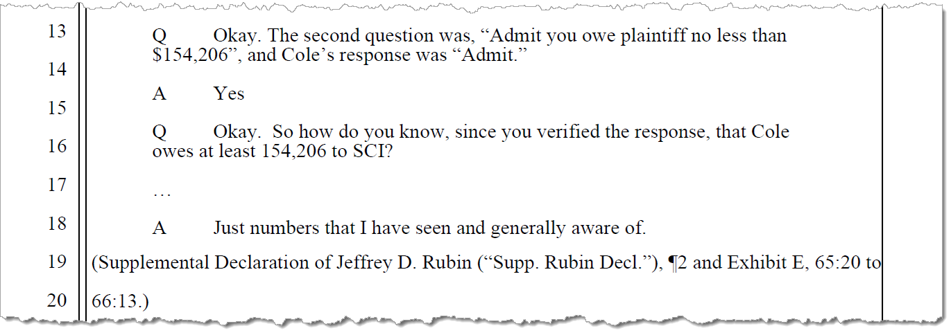 In court testimony and written discovery, Cole has already admitted that it owes SCI at least $154,206 — yet that hasn’t led to payment or a settlement. Cole’s leadership, including company president Don Cole, has described the admitted amount as based on numbers they’re “generally aware of” but has challenged SCI’s broader claim as inflated or distorted by unusual circumstances.