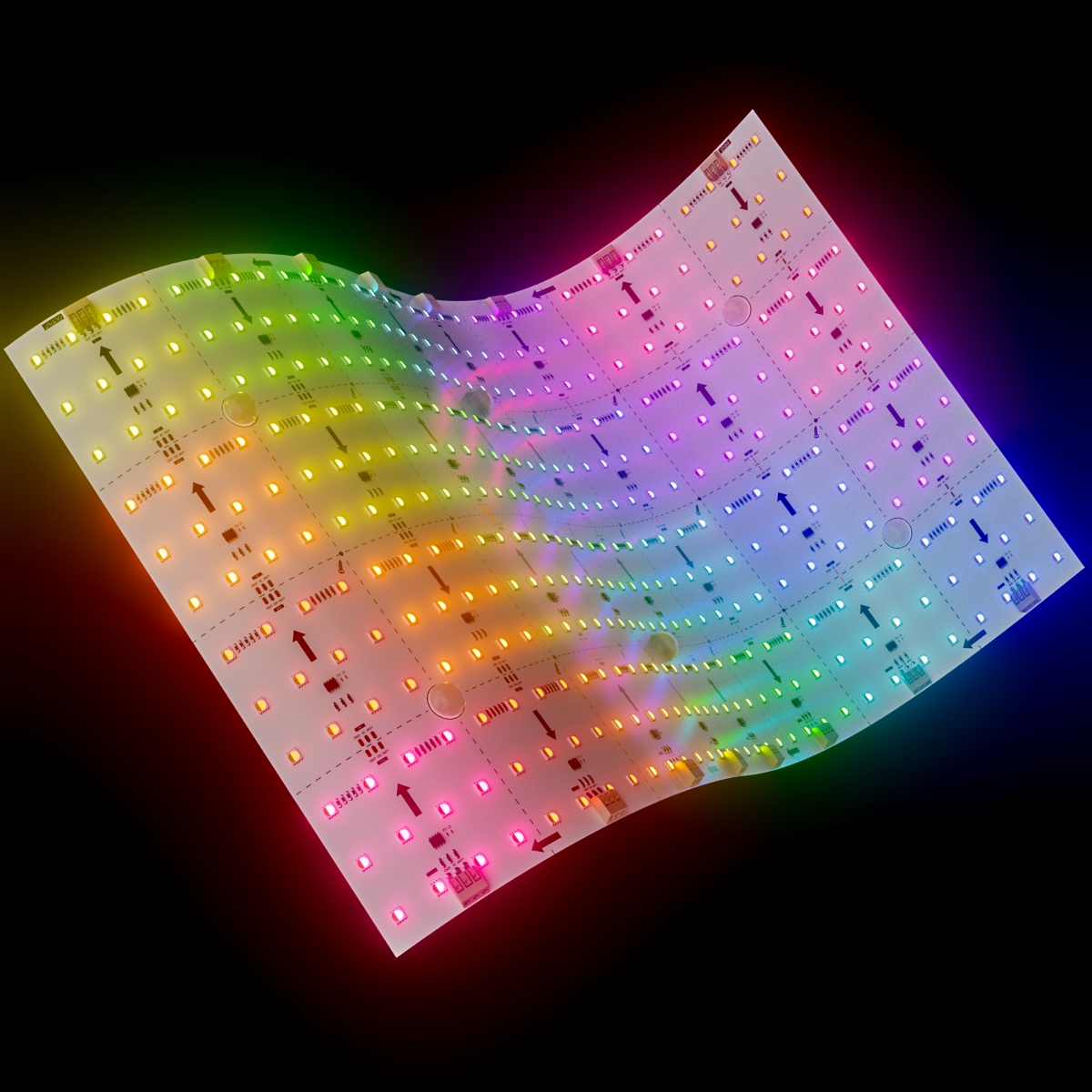 Ideal for backlighting semi-translucent materials, the Canvas Digital Pixel RGBW light sheet can deliver millions of unique colors and full customizable designs. Built-in spacers help lift transparent materials a ½” off the light sheet for a leveled and diffused lighting effect. Each Canvas sheet delivers up to 1050 lumens using only 56 watts, operating at 24V DC.
